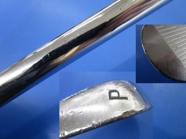 コメント | 番手:5-9 P 長さ:37.75 inch バランス:D2 重量:411 g ◎USEDアイアン5-9・Pの6本セットです。シャフトに細かな点錆があります。シャフトのスペックプリントが薄くなってます。ネックのX-CBロゴが青色に塗ってあります。ソールに擦り傷フェースに打球痕、石噛み傷、当たり傷が多くあります。グリップはカデロですが薄汚れがあります。全体的に使用感が多く特価でのご案内です。 |